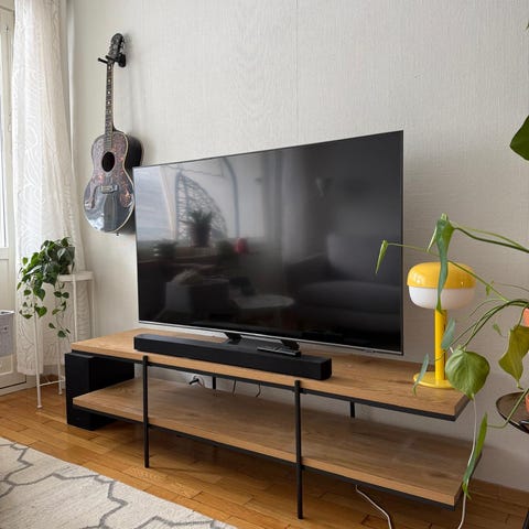 Jotexin Lyckeby TV-taso, tasossa yksi pieni jälki (kuvassa), muuten hyvässä kunnossa. Ovh. 499€, linkki tuotteeseen https://www.jotex.fi/lyckeby/lyckeby-tv-taso-42x180-cm/1612449-01