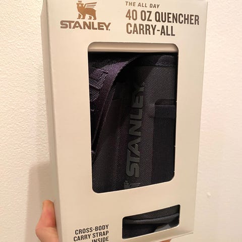 Stanleyn ihana pullokassi, taskuihin saa laitettua kännykän ja muut tavarat, sekä Stanleyn 1,2L pillipullon. Väri ihana vaaleanpunainen. Kuva lainattu Stanley Europen sivuilta.