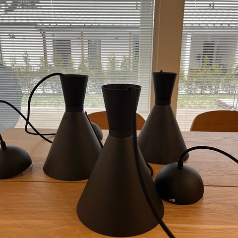 Myydään tarpeettomana kolme valkoisella maitolasisella kuvulla olevaa kattovalaisinta E14 kannan led lamppuineen. Yhtä valaisinta lukuunottamatta kaikissa on kiinni toimivat 2700K lamput. Yhdessä kiinni Hyundai merkkinen 3000K lamppu. Koukkukiinnitys. Yhdessä ei ole pistoketulppaa.