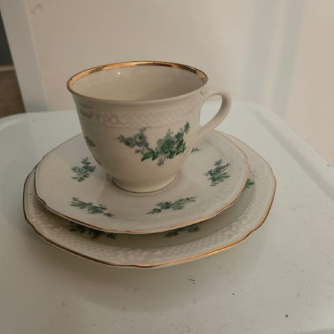 8 kpl Arabian kaunokkisarjan kahvikuppeja, jotka muuten hyväkuntoisia, mutta kultaukset hieman kuluneet. Koko setti yhteensä 50€