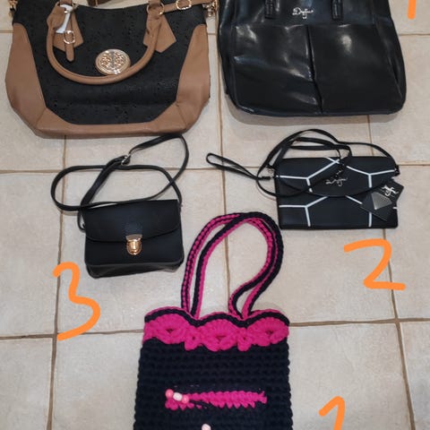 Myydään erilaisia käsilaukkuja 5 euroa/ kpl.