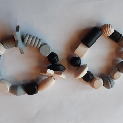 Puinen kaunis rannerengas. Pronssin/messingin väristä metallia leveimmässä kohdassa tehosteena.