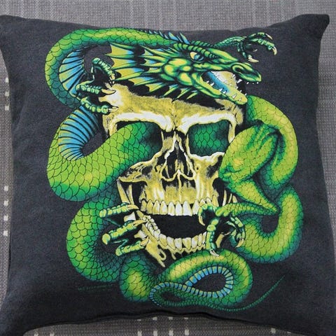 Tyyny. Pituus 50 cm, leveys 20 cm ja korkeus 9 cm. Tyynyssä vetoketju, joten päällinen on irrotettavissa pesuun.
