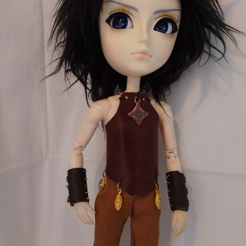 Nahkasta tehty liivi jossa koristeita.
