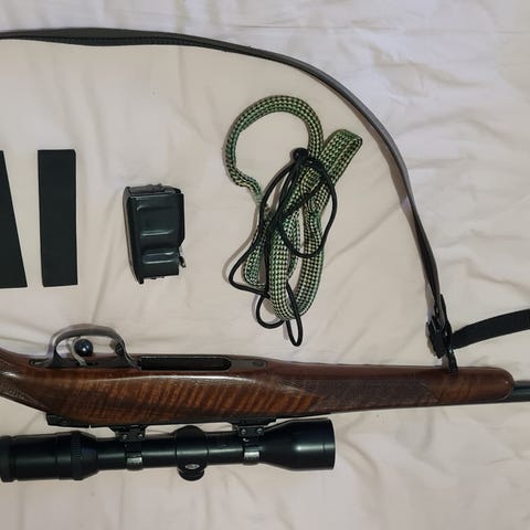 Kivääri Lakelander 9,3 x 62. Kiikari Busnell on rikki. Äänenvaimennin Br-tuote. Suojapussi, panosvyö ja noin. 20 patruunaa. Ostolupa vaaditaan. Tarjoa...