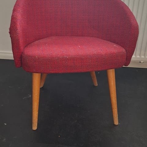 Ollut viimeiset vuodet varastossa säilytyksessä, koska kodista ei tuolille paikkaa ole löytynyt. Verhoilussa muutamia kauneusvirheitä, kts. kuva.