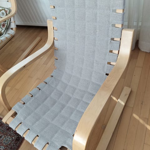Siistissä kunnossa oleva sohva. Istumapinnan kangas osassa nukkaa mutta kangas sellaista ettei se silmiin näy eikä se ole meitä haitannut yhtään. Joitakin ihan pieniä kuluman jälkiä.