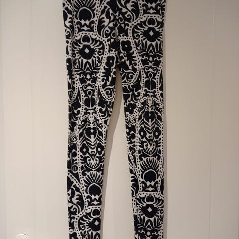 Mustat trikoot / leggingsit / legginsit puuvillaa ja elastaania. Molempien lahkeiden sivuissa niitit koko matkalta ylhäältä alas. Hyvä ja siisti kunto, joitakin kertoja käytetty ja pesty. Koko S.