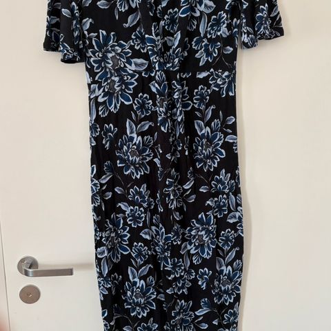 Tummansininen, kauniisti laskeutuva viskoosimekko, 5% elastia, ei rypisty, helppo ottaa matkalle. Vuorellinen.