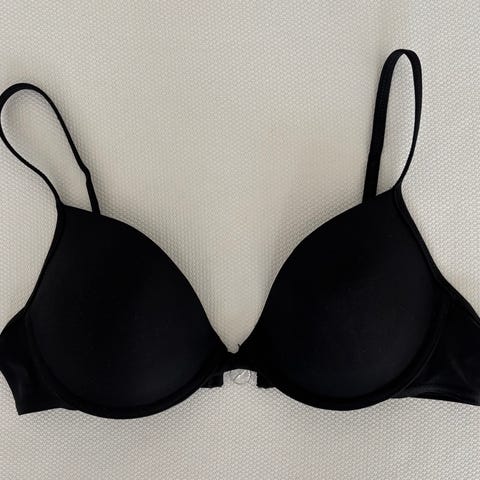 Myynnissä musta bikiniyläosa kokoa 75C, kiva rusetti edessä. Hyväkuntoinen, kupin pehmuste hieman rypistynt, ei tunnu eikä näy käytössä.