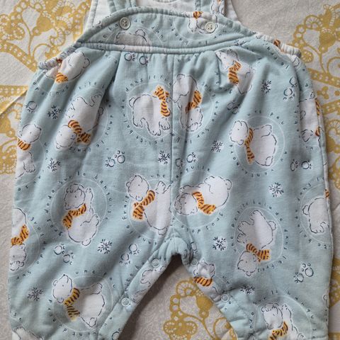 Koon 62-68 cm puuvillatrikoinen oloasu/haalari. Vetoketju toiseen punttiin alas asti. Hupussa söpöt korvat. Hihojen ja housunlahkeiden resorit käännettävissä, jolla saa käyttöikää vaatteelle lisää. Kunto pientä pintanyppyä lukuunottamatta oikein hyvä.