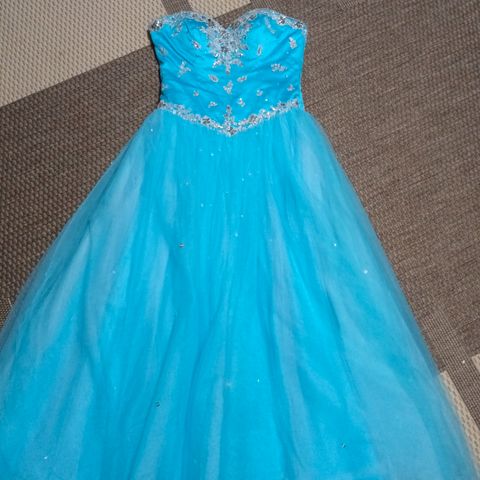 Olkaimeton nyörit selässä olevan tylli mekko. Vannealushame mukana. Käy 175cm ja itselle ok vaikka olen 38 kokoa