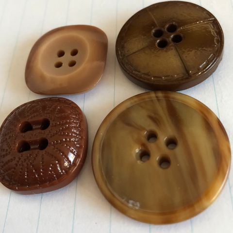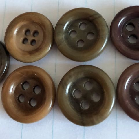Kuvan mukaiset ruskeat läpiommelnapit. Koot 27 - 30 mm.