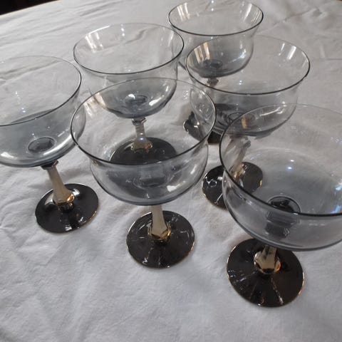 Tyylikkäät coctail-lasit. Ostettu Saksasta 20 v sitten. Ollut pari kertaa käytössä. 6 kpl yhteensä 30 euro.