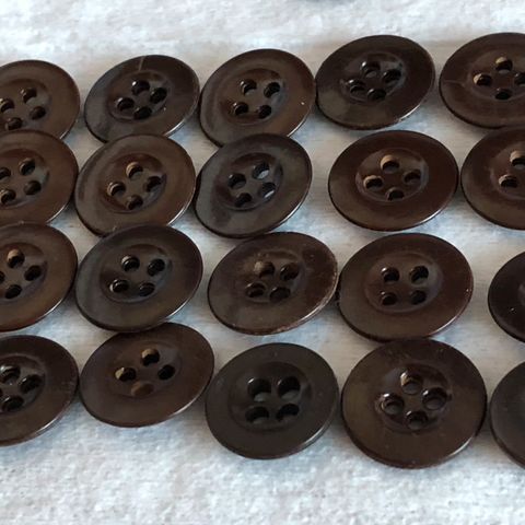 Kuvan mukaiset läpiommelnapit. Kova muovia. Koot 12 - 15 mm.