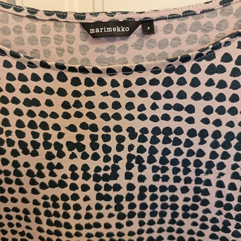 Myydään hienokuntoinen Marimekon tunika Kurkku, jossa on sivussa taskut. Koko S ( kainalosta kainaloon 48 cm, olka-helma 82 cm, vajaamittaiset taskut). Hinta 18euroa noudettuna/ toimitettuna lähialueelle, lähetettynä 25euroa tai toridiili.