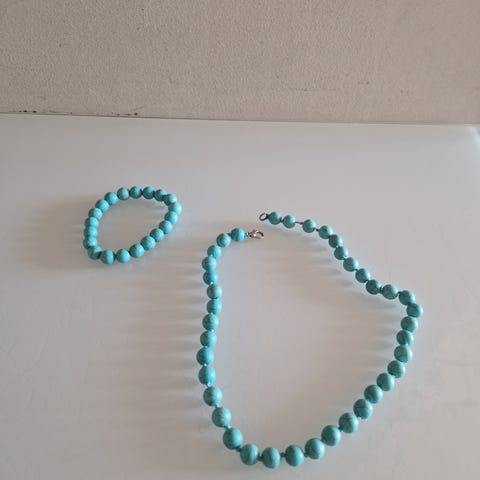 Turkoosi helmi / kivi kaulakoru sydän riipuksella