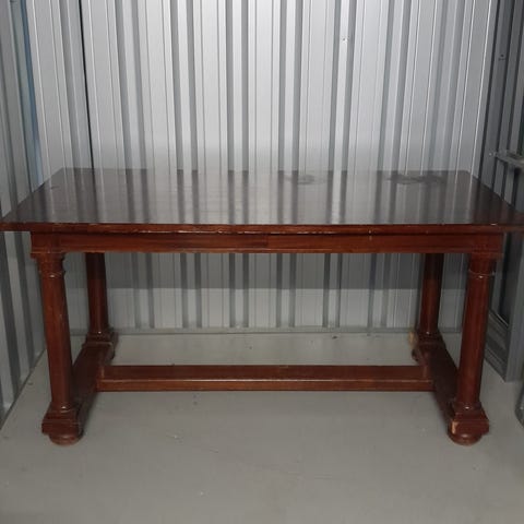 Toisessa päädyssä käsidesin aiheuttamaa värinlähtöä, eli kaipaa siltäosin pinnan huoltoa tai pöytäliinaa. Pöytä muilta osin hyvässä kunnossa.