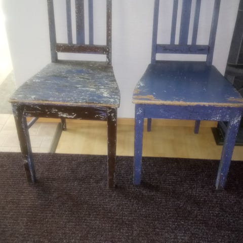 Ehjät, puiset talonpoikainen tuolit 2kpl, istuin korkeus noin 41cm, käyttö kulumaa, vanhat, ajaa asiansa edelleen