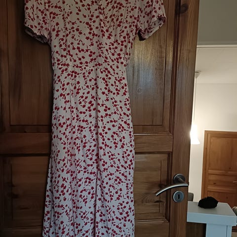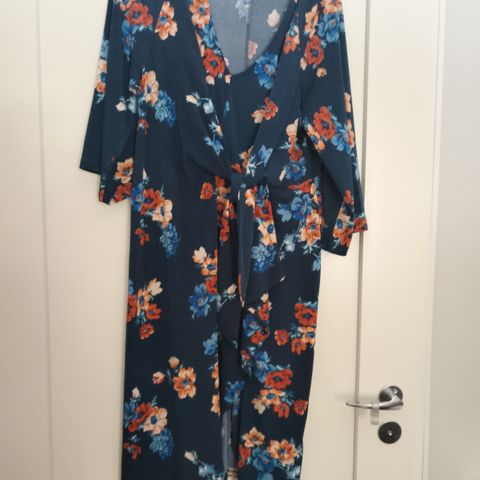Polvimittainen kukallinen t-paitamallinen kietaisumekko. Mekossa nepparikiinnitys sekä vyötäröllä solmittava nauha. Ihana monikäyttöinen mekko, menee juhlamekkona sekä arkimekkona.