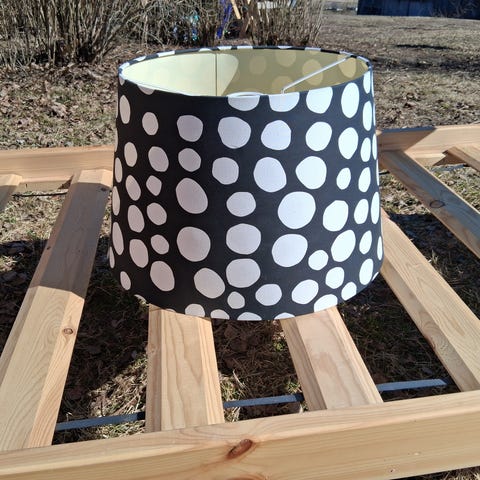 Virkattu lampunvarjostin ripustusjohdolla