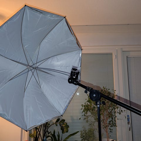 Löytyy kuvauksiin kolmijalkoja softboxeilla, sateenvarjoa salamakuvaukseen jalustalla. Taustakankaalle taustateline yms... kysy jos jotain vailla.