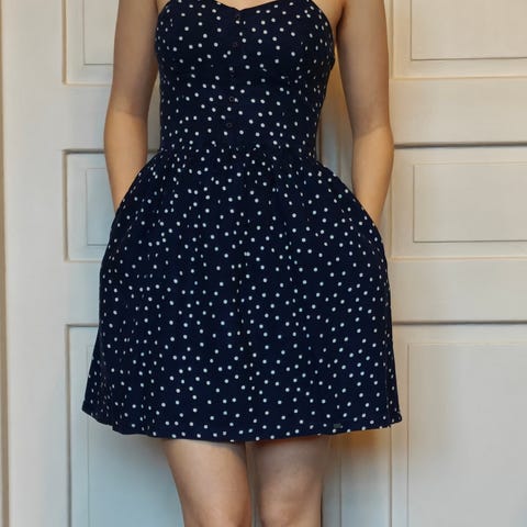 Siistikuntoinen naisten tai nuorten Super Dry -merkin minimekko.