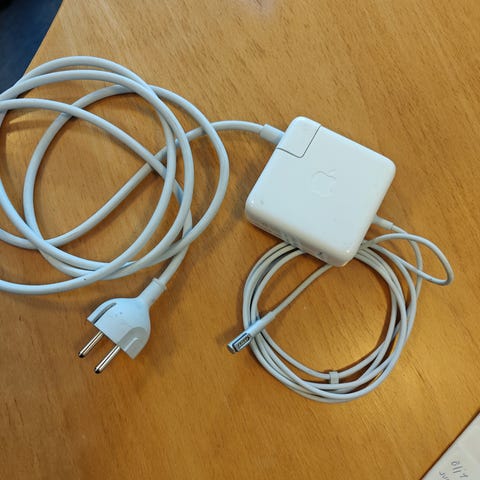 Vanha käyttämättä jäänyt MagSafe Airline Adapter virtalähde. Mahdollistaa kannettavan käytön autossa tai lennolla (jos yhteensopiva liitin), ei ilmeisesti lataa akkua.