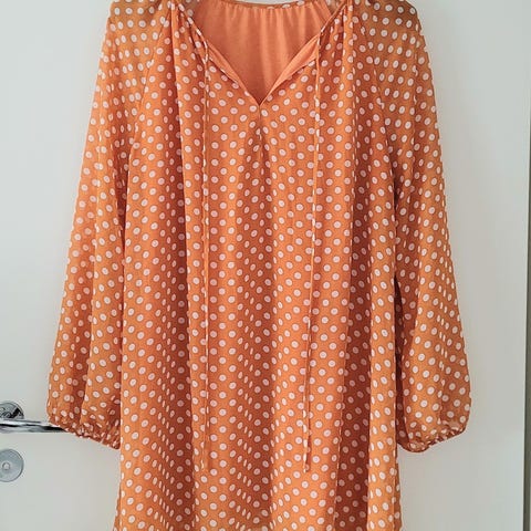 Käyttämättä jäänyt tunika/ pusero. 95% viskoosi, 5% elastan jonkin verran joustava kangas. Koko L, kai- kai 52 cm takapuolelta mitattu, etu puolella rypytys antaa enemmän tilaa. Kimonohiha pituus kainalosta 32 cm. Pituus 70 cm. Nouto tai postitus XXS paketti 6,90€