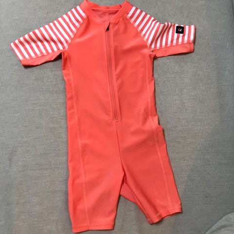Lyhytlahkeinen ja -hihainen Reiman UV-puku/uima-asu. Tämä uusi, mutta käyttöönottopesty, jonka vuoksi jostain syystä hihan merkki kulunut. Merkkiä lukuunottamatta siis uusi kunto.