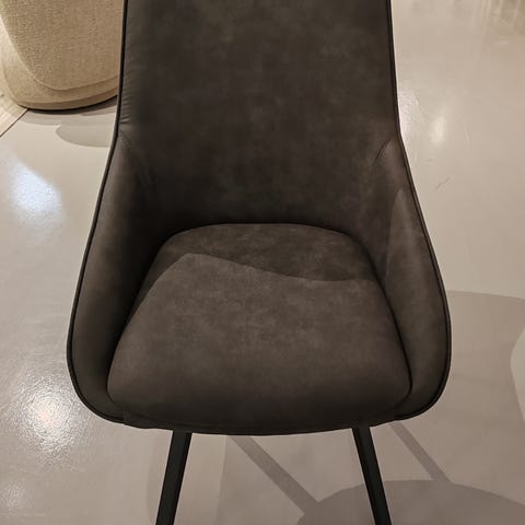 Hyväkuntoinen ISKUsta ostettu Rowico-merkkinen monikäyttöinen tuoli. Meillä ollut työpöydän tuolina vähäisellä käytöllä. Tuoli on pehmustettu ja se on verhoiltu tummanharmaalla samettimaisella kankaalla.