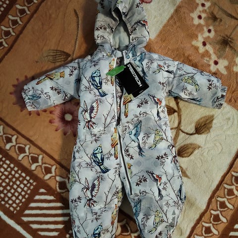 Myydään vauvan toppahaalari, koko 74. Hupussa lämmin karva. Vaunuissa pidetty, hyvä kunto.