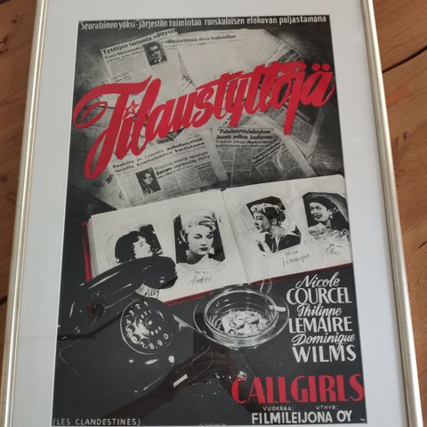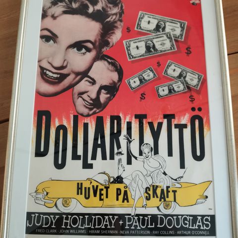 Porvoosta antiikkiliikkeestä aikoinaan ostettu ja kehystämössä kehystetty elokuvajuliste. Kehyksissä on lasi. Kehyksen yläosassa pikkuinen jälki (kuva).