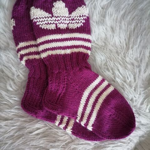 Kalevala-aiheiset villasukat, koko 37/38. Neulottu Nalle-langasta. Uudet. Kalevalan kaikuja.