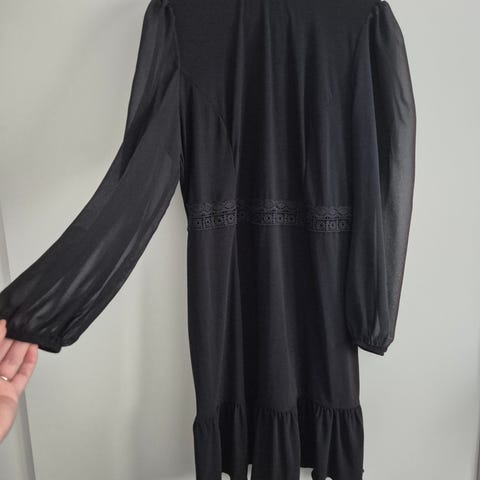 Myydään musta mekko kokoa 42. Sisävuori. Laskostettu, A-linjainen. 100% pol. House.