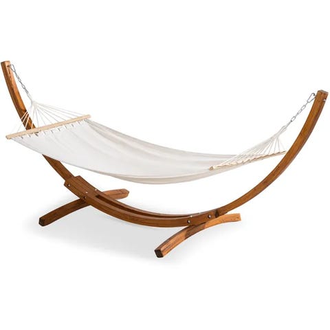 Kahden hengen laadukas Brasilialainen Tropilex riippumatto mustaksi maalatulla säänkestävällä puutelineellä.