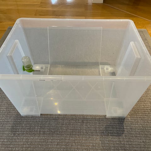 Kuvassa oleva häkki tarvikkeineen. Kesy hiirelle tai käppänälle.