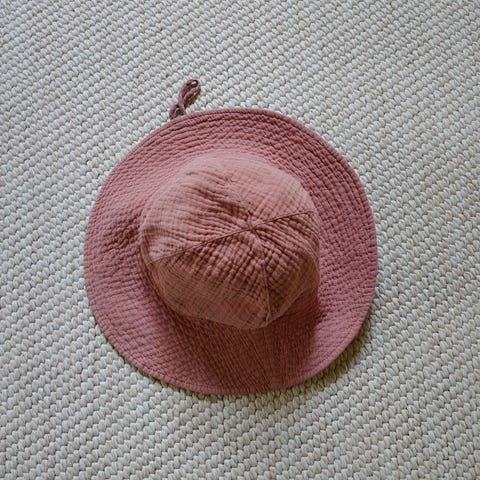 H&M kesähattu, puuvillamusliinia. Väriltään nostalgia rose/ vanha roosa. Koko 122/140 cm. Sopii n. 54 cm päähän. Erittäin siisti kunto.