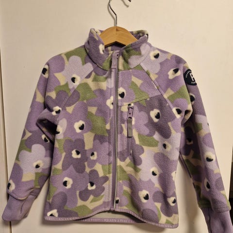 Lohenpunainen POPin Windfleece-takki koossa 98. Ostettu uutena ja ollut hetken käytössä yhdellä lapsella ja onkin kuin uusi eikä nukkaa tai kulumaa. Heijastimet ja vetoketjut erittäin hyvät. Vasemmassa hihassa hyvin pieni, vaalea 0,5 cm tahra, joka ei lähtenyt pesussa pois. Kuvassa näkyy. Hajuton ja savuton eläintalous. MMM.