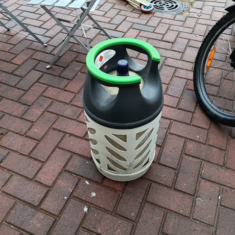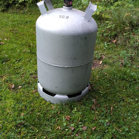 Kaasupullo 11 kg päältä täytettävä. Tyhjä