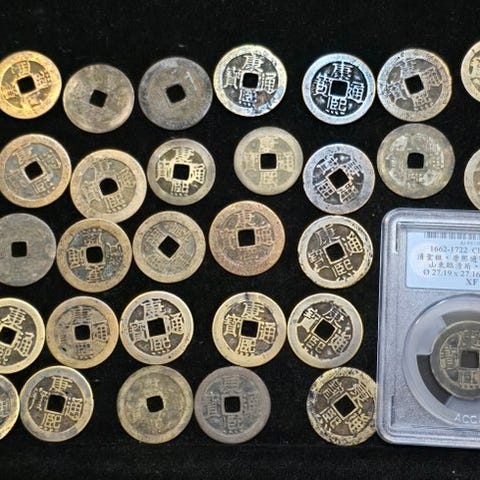 Myydään vanhoja itämaisia (Kiina) hopea- ja pronssikolikoita. Kolikot ovat alkaen Qing dynastiasta Republic of China. Joukossa on myös harvinaisuuksia. Yksi hopeakolikko on juhlaraha vuodelta 1997 kun Hong Kong palautui Kiinalle korkeapuhdasta 99,9. Yksi punainen kunniamerkki, jossa on Maon profiilikuva on tehty 1960-luvulla.