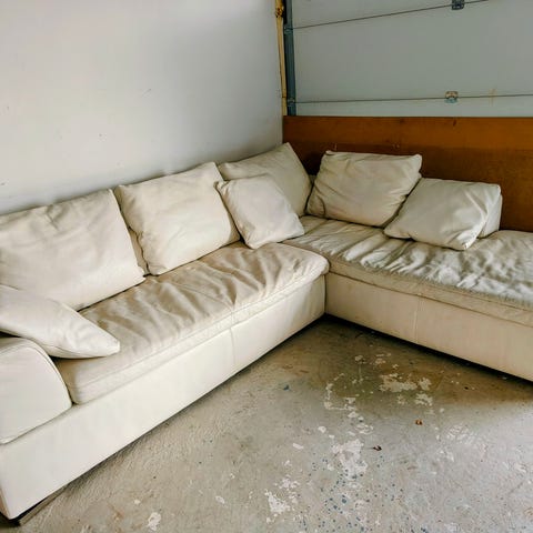 myydään kuvan mukainen nahkasohva, käytetty, kissojen kynsistä jälkiä, uuteena ollut 1600€, nyt 500€, kuljetusta varten saa sohvan kahteen osaan