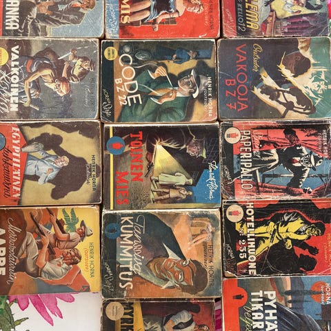 Täydet sarjat Lipposia, Korkkeja ja El Coyoteja + paljon muuta saman aikakauden kirjoja Outsiderilta, Taigalta, A. J. Pullalta + muilta.