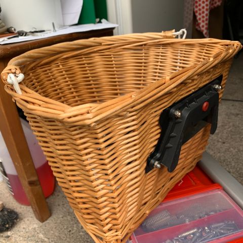 Kiinnikkeitä vain alakiinnike mukaan. Muuten hyvä ja ehjä kori.