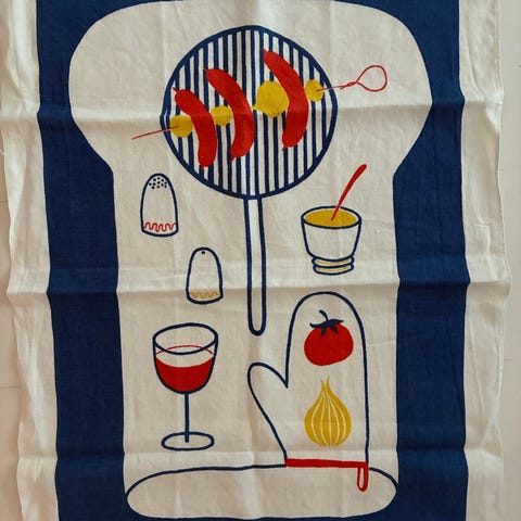 Hakusanoja: vanha retro keittiöpyyheliina pyyheliina pellavaa tampellan keittiöaihe astiapyyhe astiapyyheliina