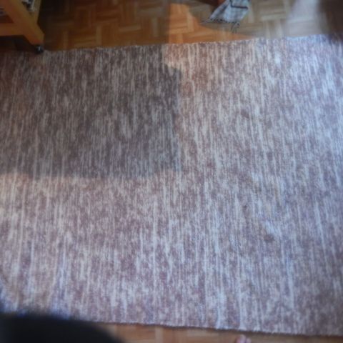 Itsekudottu trikookuteesta kudottu räsymatto. Siisti. Maton mitat 97 x 218 cm. Hp. 30 e + kulut.