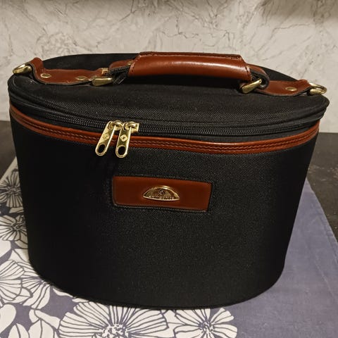 Itsellä käyttämättä jäänyt Samsoniten musta toiletti- / meikkilaukku. Korkeus 24 cm, Pituus 28 cm. Olkahihna + pikkupussukka, jossa peili.