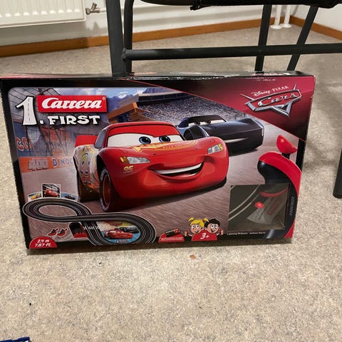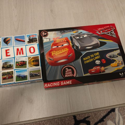 Sisältö: 10 kilparadan osaa, 4 autohahmoa + muovijalat ( 1 muovijalka rikki siinä korvikejalka), 2 noppaa, säännöt. Yli 5-vuotiaille. Vain nouto.