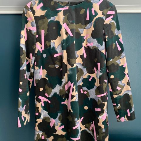 .Viskoosi. Ostettu Ranskasta. Koko L XL. Kerran käytetty ja sitten pesty. Suora malli. Sivutaskut . Juhlaan tai kesäksi. Marimekko tuntinen.