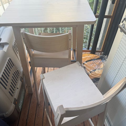 Hyvin vähän käytetty Ikean Rönninge baaripöytä ja jakkarat. Huom!!! Aiempaa tuotantoa, joka umpikoivua ja jämäkämpi kuin nyt myynnissä oleva malli (ovh. 397e). Pöytälevy 70x70 ja korkeus 102.